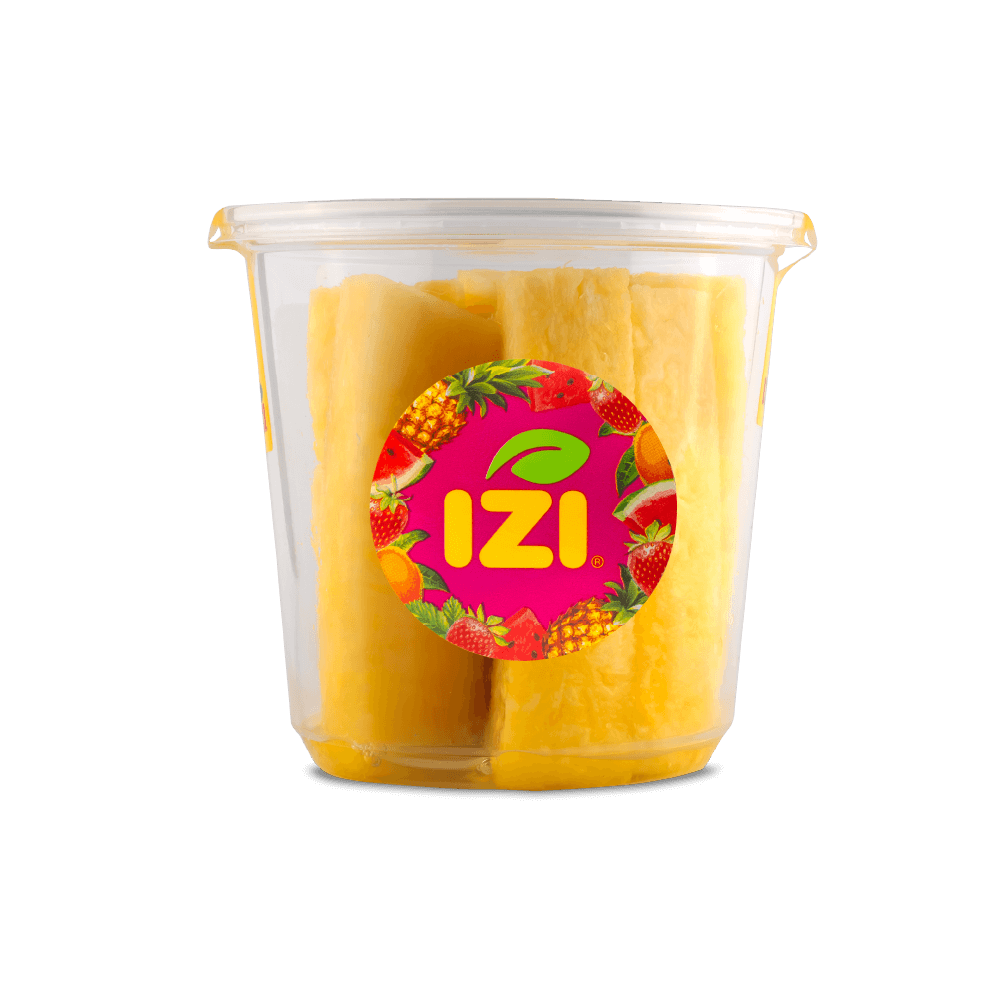 Deliciosa, sabrosa, jugosa y apetitosa fruta tropical que IZI le lleva para su consumo ideal en su oficina, hogar o donde quieras consumir. Comer piña fresca en todas sus formas con regularidad puede protegerte de muchas afecciones de salud, como estreñimiento, diarrea y síndrome del intestino irritable; adicionalmente, consumir Piña IZI, aporta al organismo una alta cantidad de Vitamina C, facilitando la absorción de otras vitaminas y minerales, ayudando a prevenir enfermedades cardiacas, diabetes, alzhéimer y demencia.